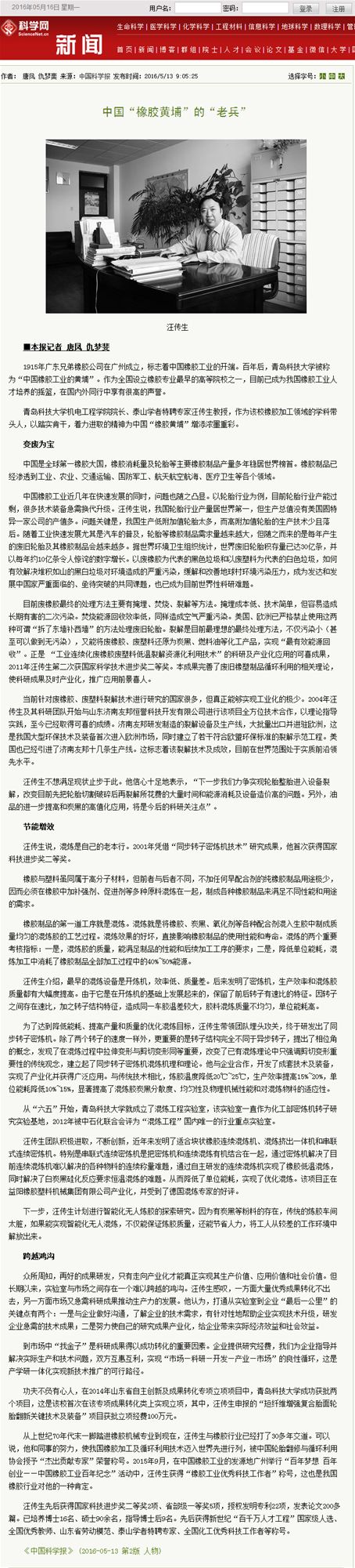 4月21日,应《中国科学报》的邀请,澳门十大信誉院长汪传生教授接受了该报记者的专访。