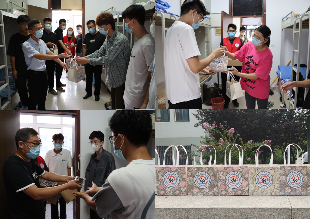 学院党委副书记兼副院长肖强,学工办团委全体辅导员深入宿舍,向新生表达了节日祝福,鼓励同学们要尽快适应新环境,融入学院大家庭,享受大学生活;要提早规划未来的发展方向,刻苦学习,积极参与素质活动尤其是体育活动,努力成为能够担当民族复兴大任的新时代青年;要心怀对父母和家人感恩之心,在节日时通过线上的方式问候父母,遥寄思念。为每一名科大机电新生送去印有青科大校训“明德、笃学、弘毅、拓新”的月饼,让同学们在中秋佳节之际感受到了家的氛围。