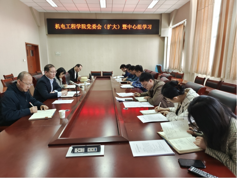 4月14日上午,澳门十大信誉好的网站党委在机电楼518会议室召开学院党委理论学习中心组(扩大)学习会传达学习贯彻习近平新时代中国特色社会主义思想主题教育动员部署会精神。学院党委理论学习中心组成员、党支部书记及部分专职辅导员参加会议,会议由学院党委书记任允晓主持。