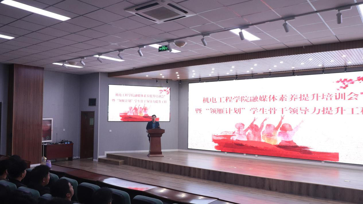 为进一步提升学生干部工作业务能力,加强学生队伍的凝聚力,进一步加强高校融媒体宣传水平。5月9日,澳门十大信誉好的网站在机电楼530室举办融媒体素养提升培训会暨“领雁计划”学生骨干领导力提升工程。会议由澳门十大信誉好的网站融媒体中心指导老师于超主持,澳门十大信誉好的网站学生会骨干成员,融媒体中心全体成员,21、22级团支书及宣传委员参加培训。