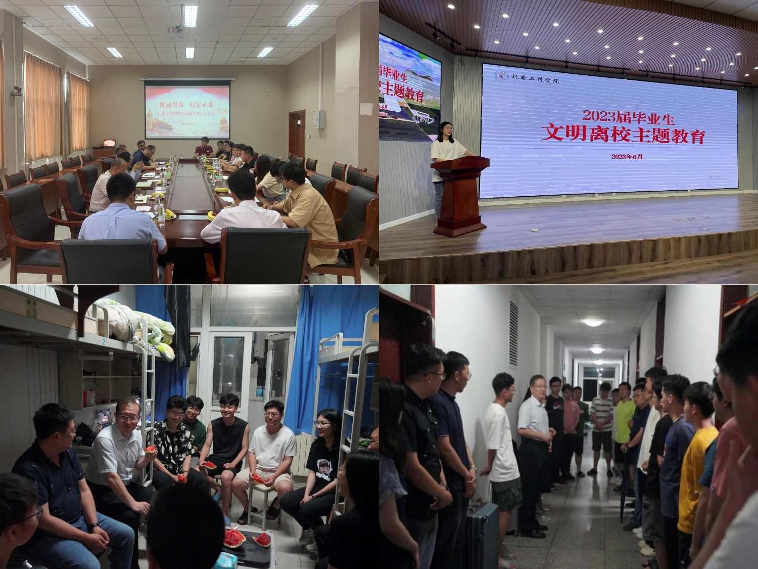 学院开展“机遇青春电定未来”2023届毕业生座谈会,活动期间,各位老师与同学们进行了亲切交谈,详细了解了同学们的就业、考研等未来规划情况,共话成长,共叙别情,共话未来。毕业生代表们分享了大学里的学习、生活、实践、就业等各方面的收获与成长,畅谈人生理想,表达了对母校深深的留恋与不舍;举办“行而不辍未来可期”宿舍活动,澳门十大信誉领导班子及全体辅导员走进宿舍,为全体毕业生送上象征红红火火、硕果累累的西瓜,期望大家在未来的工作、生活中牢记母校和师长的嘱托;