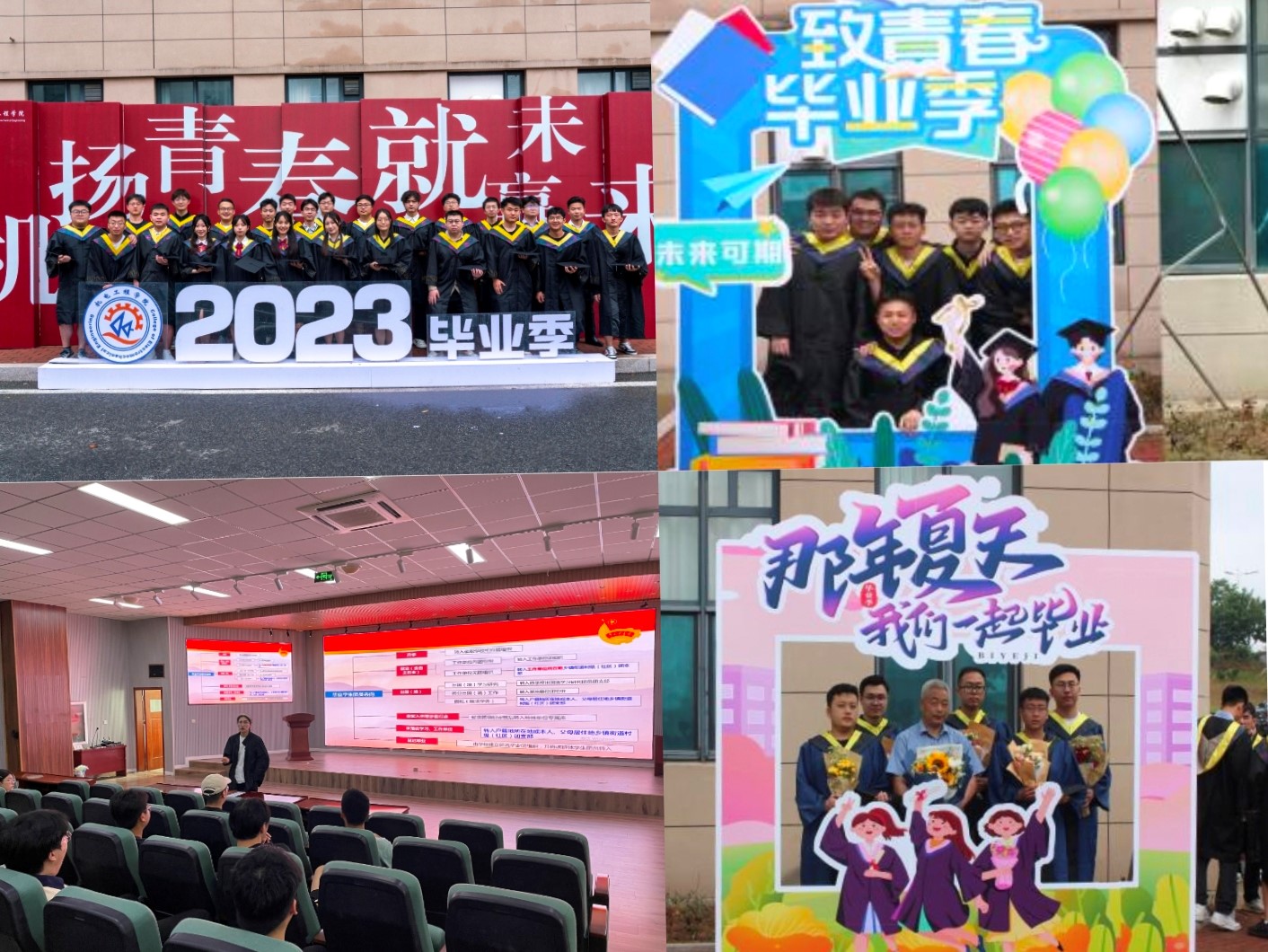 学院组织各班召开“最美的时光收获最美的成长”毕业季主题班会,各班以班级为单位,组织毕业生回顾四年大学生活的点点滴滴,深化毕业生对母校的归属感、认同感,培养毕业生校友情怀和感恩意识;开展“青春当燃志愿有我”志愿服务活动,2019级学生代表打扫实验室卫生,以实际行动彰显奉献担当,以实际行动发扬劳动精神;开展“奔向未来逐梦青春”主题毕业跑活动,以脚步丈量校园,纪念美好青葱岁月,回溯青科绚烂时光,全面推进学校体育综合改革进程,积极响应“爱体育·兴科大的号召;学院为1074名毕业生赠送校徽院徽,凝练在青科大求学的光“徽”岁月,刻下每一位毕业生的青春华“章”;开展“我与母校合个影”毕业照片征集活动、“尺素情长 青春无悔”毕业拍照打卡活动,记录了毕业生的青春笑脸,留下了专属于毕业季的美好与感动。