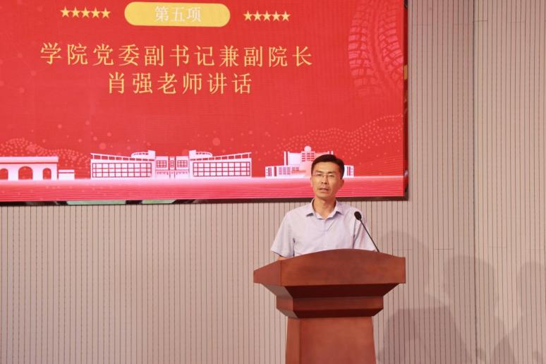 肖强书记代表学院党委对参加此次暑期“三下乡”社会实践活动的师生表示热烈祝贺,并结合我校青年师生投身实践的生动典型案例,对即将出征的志愿者提出四点希望:一是要始终坚持用脚步丈量祖国大地。在实践过程中深入农村、社区、企业去调研,在社会实践的大课堂中认识新时代的伟大成就和伟大变革,收获实打实的经验和成长;二是要始终坚持用眼睛发现中国精神,主动对接乡村振兴等国家重大战略和重大任务,创新实践载体,深入调查研究,自觉成为中国精神的信仰者、践行者、传播者;三是要始终坚持用耳朵倾听人民呼声。结合自身专业知识和技能为群众办实事、办好事,将社会观察、感受思考、措施办法转化为实实在在的实践成果,努力获取真知灼见,真正地了解国家、奉献国家;四是要始终坚持用内心感应时代脉搏,立足调查研究、主动发现问题、深入分析问题、努力解决问题,练就过硬本领。最后,肖书记提醒大家守牢安全底线,增强安全意识,服从管理,统一行动,在社会实践中认识社会,在社会服务中增长才干,在艰苦环境中砥砺品质,在深入群众中锤炼作风,在联系实际中寻找差距。