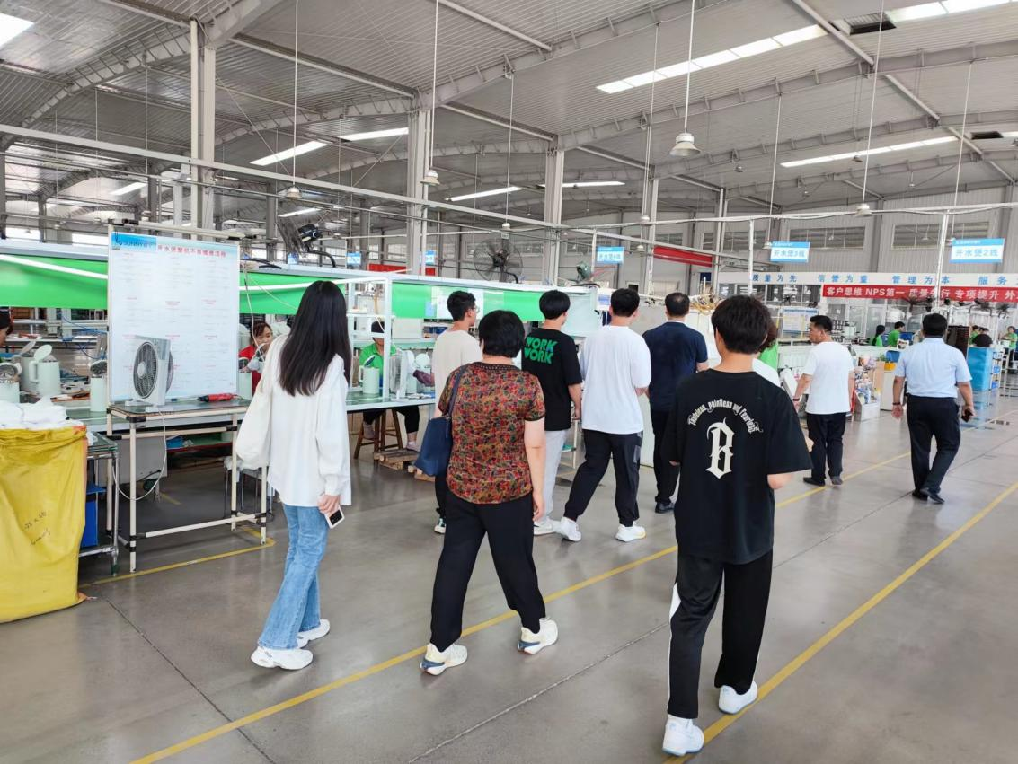 随后,调研团来到山东胜宁生活电器有限公司,在副总经理王云升的引导下,参观了产品展厅、实验室和生产线。从王总的介绍中得知,公司最初为九阳电器做零配件配套,目前成为九阳、海尔等知名电器品牌在北方最大的代工厂,同时,逐渐培育起自主品牌欧碧源,销售网点在全国迅速扩张。回顾公司的发展历程,王总的体会也是“敢想敢做”,做企业就是要抓住机遇,脚踏实地,同时要利用好校地各方面资源。提及青科大,王总对学校的优势研究方向和宁津籍高层次人才如数家珍,希望校企之间有更多的人才和技术交流。