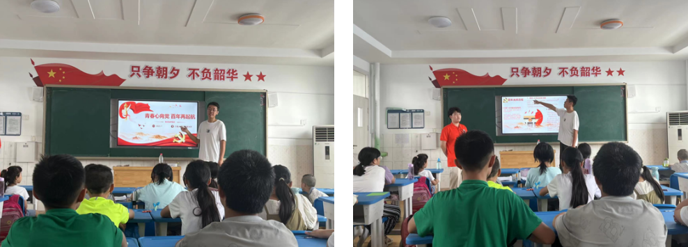 最后,调研团成员为同学们带来党团知识宣讲,通过对党的百年奋斗光辉以及取得的伟大成就的讲解引出青少年在此过程中扮演的角色与作用,进而引出共青团对于党和国家人民的意义,最后,对历史文化和民族精神的结晶——建党精神进行视频介绍,将民族精神生动形象的展示在同学们面前。调研团成员帮助学生树立一种求索的精神品格;建立一种主动探求知识、渴求历史文化真理的精神取向。对于其人生规划和精神归属有很大的作用。可以说,正是有了党团知识的存在,才有了青少年对一种希冀的文化家园的建构。调研团成员心心向党,不忘初心,以新时代的青年作风不断要求自己,为教育事业高质量发展从而推动教育强国建设贡献自己的一份力量。