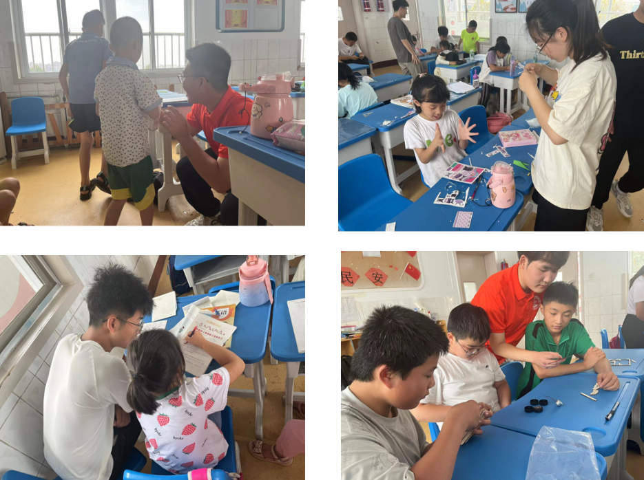 随后调研团成员带着孩子们开展趣味游戏及手工艺品制作专题活动,通过多媒体展播、实例教学、现场示范等方式培养同学们的动手能力和独立思考能力,并借助小组合作让同学们认识到团结合作、互帮互助、集思广益的重要性。在调研团成员与同学们的切身参与下,课堂气氛活跃,活动开展丰富充实,在课间还开设了作品展示环节,并表达了调研团成员对同学们作品的肯定。通过这些活动,同学们不仅增加了对彼此的了解,还领悟到团队合作的宝贵之处,为同学们的假期增添了浓墨重彩的一笔。