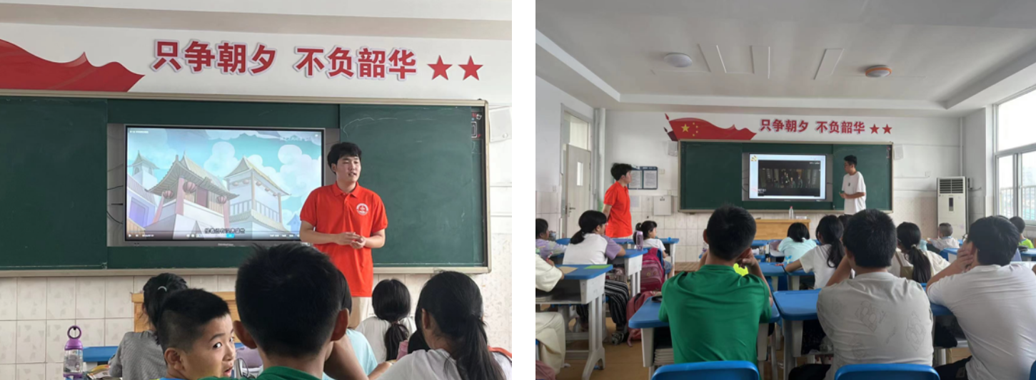 首先开展的是科学知识宣讲活动,以此来启发少年儿童科学素养,拓宽少年儿童科学知识面。就夏季降温方式、中暑预防措施及原理与学生们互动,帮助他们学习了解必备生活常识及背后的科学原理,激发他们对科学真理的好奇心,培养他们独立思考的能力,同时,在课堂上鼓励同学们积极发言,培养他们的自信心以及学习主动性。实践队员用精心的准备为学生们呈现一场别开生面的科学知识宣讲,以真挚的热情呵护他们对学习的渴望,在他们心中埋下一颗求真务实、探求科学真理的种子。