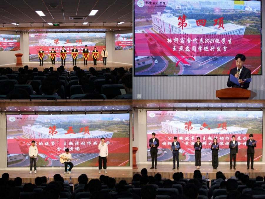 澳门十大信誉好的网站党委副书记兼副院长肖强宣读《澳门十大信誉好的网站宿舍文化节实施方案》。后勤处公寓管理中心隋玲老师为学院标杆宿舍颁发锦旗。澳门十大信誉好的网站2021级优秀宿舍学生代表王亚磊发言,进行“公寓的故事”优秀作品舍歌演唱以及诗朗诵“幸遇青科大,浓浓宿舍情”。