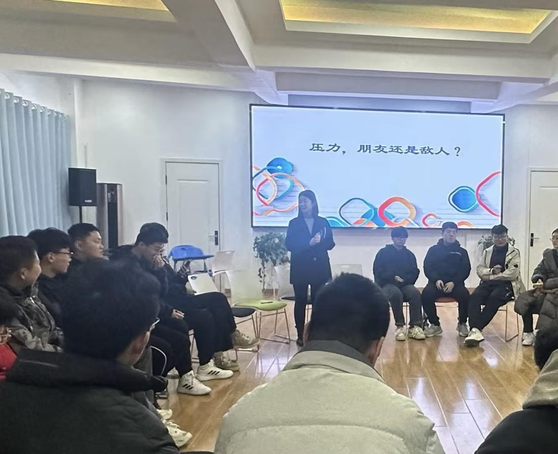团辅活动分为两个阶段。第一阶段,刘璐老师强调在考研备战期间要正确认识并处理考研带来的压力,为同学们提供了一系列实用的心理调适方法,引导同学们坚定信心、保持平常心,从容应考。同学们认真聆听,积极讨论。