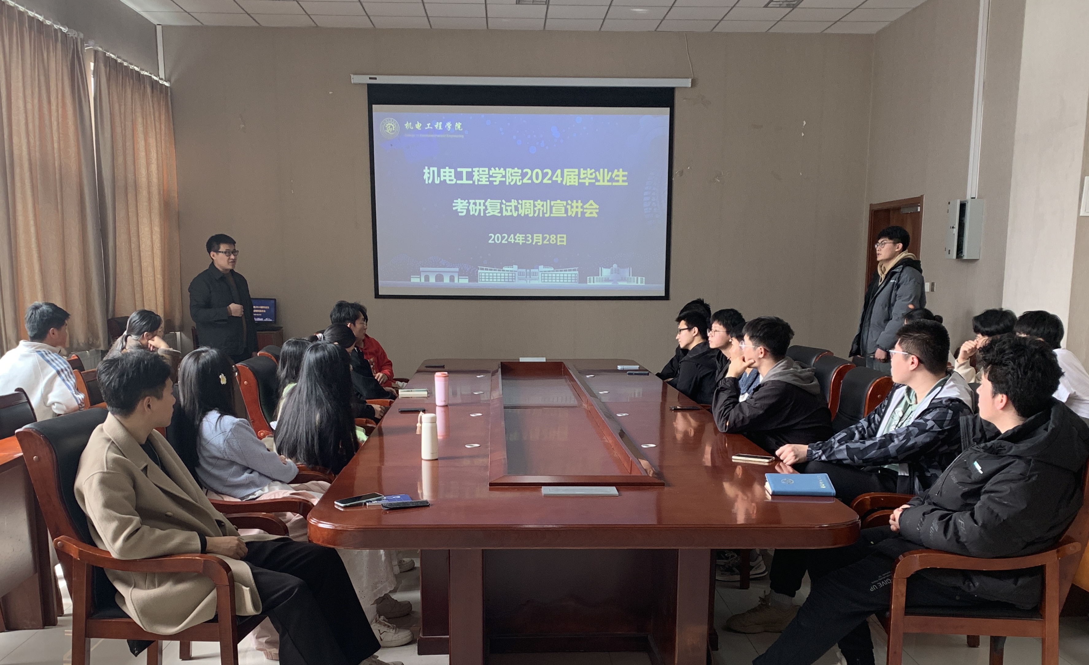 3月28日,澳门十大信誉好的网站2024届毕业生考研复试调剂宣讲会在机电楼518会议室举办。副院长刘治明参加会议并进行复试调剂指导,毕业班辅导员、2024届考研学生代表参加宣讲会。