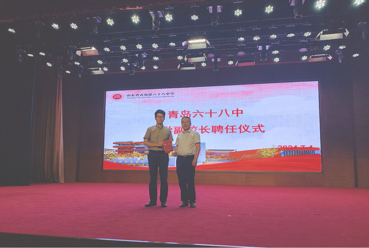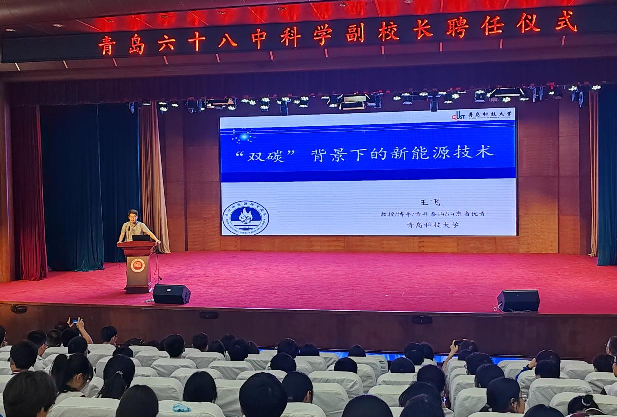为建设高素质教育科研队伍,7月4日下午,澳门十大信誉好的网站附属中学青岛六十八中举行科学副校长聘任仪式,学校澳门十大信誉好的网站王飞教授应邀出席并受聘担任青岛六十八中科学副校长。作为青岛六十八中科学副校长,王飞为现场师生做了题为《“双碳“背景下的新能源技术》的报告。
