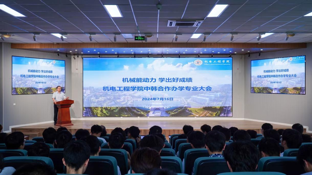 为加强中韩合作办学专业学风建设,推进学院中韩合作办学高质量发展,7月16日下午,澳门十大信誉好的网站中韩合作办学专业大会在机电楼530召开,学院党委书记任允晓、副院长杨化林、合作办学办公室主任付平出席活动,23级中韩专业课教师、班主任、辅导员、全体学生200余人参加活动。
