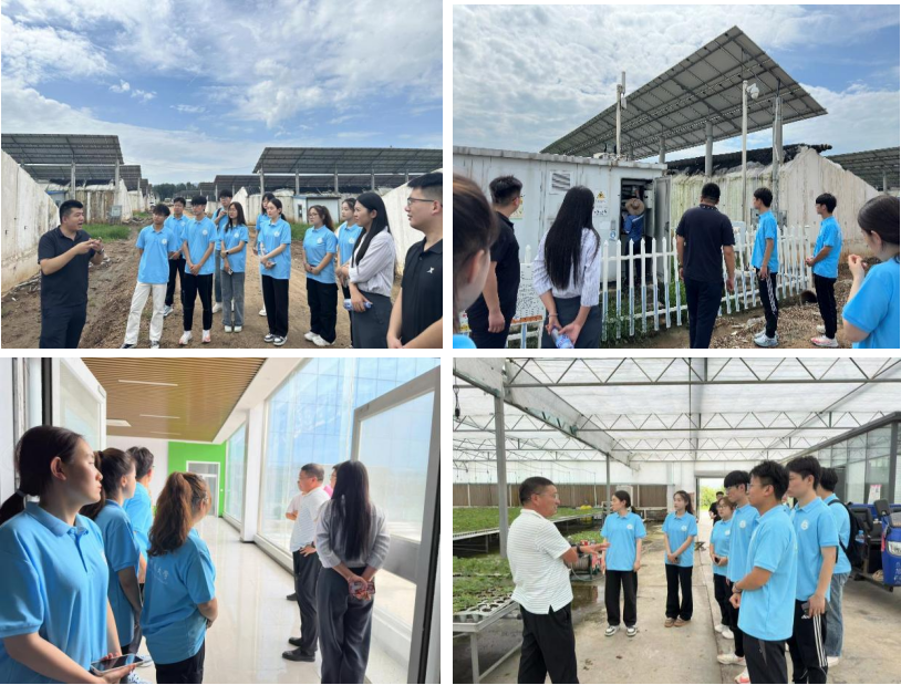 团队走进田间地头,感悟科技助农。为了解当地特色农业发展情况,团队成员走进田间地头,深入参观宏茂农业“光伏+农业”结合现场,走访新泰市农业高新技术产业开发区乡村振兴赋能中心,在了解当地光伏农业在发展过程中遇到的问题及与传统农业相比所带来的好处。团队成员纷纷表示,推动乡村振兴必须要厚植学深悟透、苦干实干的精神品质;要推进科技兴农,引智引技到田头;要用好一方水土,开发乡土资源,结合自身所学专业技能,推动乡村振兴。