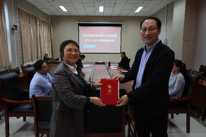 副院长李剑光为新学年聘任的院教学督导一一颁发聘书。由于校院两级改革的深化和校质量管理部门职能转变,本学年最大的变化是,有更多的校督导回归学院,带来丰富督导经验同时,充实了院督导队伍。