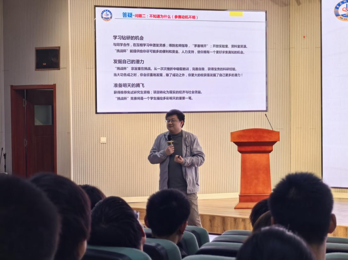 第二期讲座邀请了“海狼游艇工作室”指导教师杨奉儒担任主讲嘉宾。杨老师以其深厚的专业知识和独到见解,深入浅出地介绍了中国国际大学生创新大赛、“挑战杯”全国大学生课外学术科技作品竞赛等重要科创赛事。他详细阐述了赛事的背景、特点、流程以及评审标准,让同学们对这些赛事有了全面而清晰的认识。在分享过程中,杨老师结合自身指导学生参赛的丰富经历,讲述了在科创过程中的宝贵心得与感悟。他提到,科技创新不仅需要扎实的学术基础,更需要勇于探索、不懈实践的精神,鼓励同学们在面对困难与挑战时要坚持不懈,勇于突破自我。
