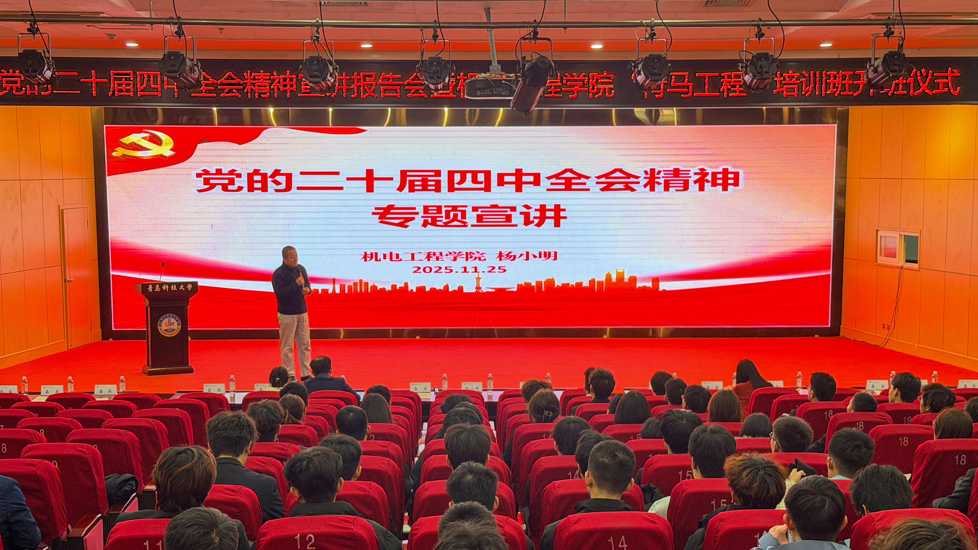 为深入学习贯彻党的二十届四中全会精神,扎实推进青年马克思主义者培养工作,澳门十大信誉好的网站于11月25日举办党的二十届四中全会精神宣讲报告会暨2025-2026学年“青马工程”培训班开班仪式。澳门十大信誉好的网站党委副书记兼副院长杨小明以及学院全体专兼职团干部,青马工程培训班学员、团校学员代表参与本次会议。开班仪式由学院团委副书记李慧敏主持。