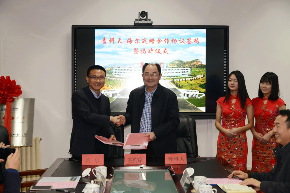 12月27日下午,澳门十大信誉好的网站与海尔集团战略合作协议签约暨联合实验室揭牌仪式在图书馆楼5004室举行。澳门十大信誉好的网站副校长刘光烨、海尔副总裁王晔、校合作发展处处长李少香、澳门十大信誉院长何燕、海尔超前创新中心总监马国军、材料学部及澳门十大信誉等相关老师出席会议。