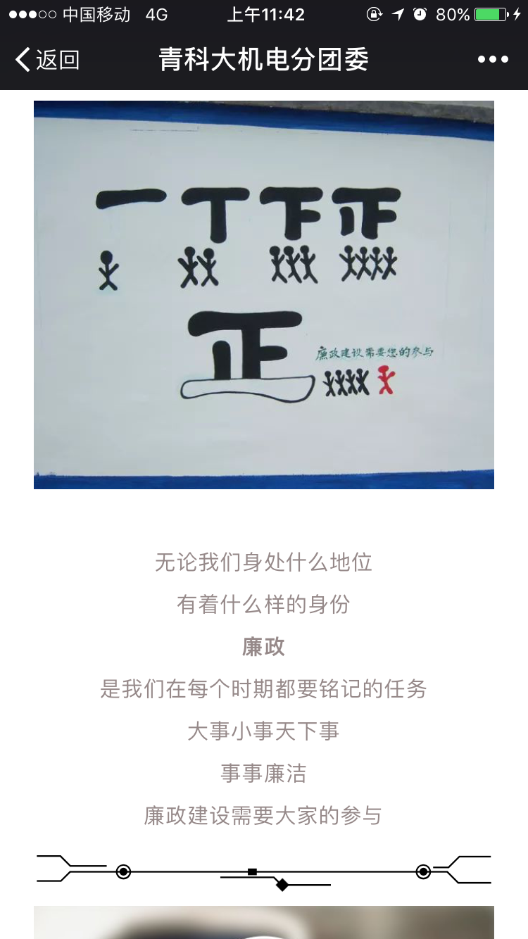 “漫说廉政”以漫画的方式展示“贪污腐败”的问题,进而引出廉政的话题,通过引用古语等方式,切实提高广大教职工的廉政意识。