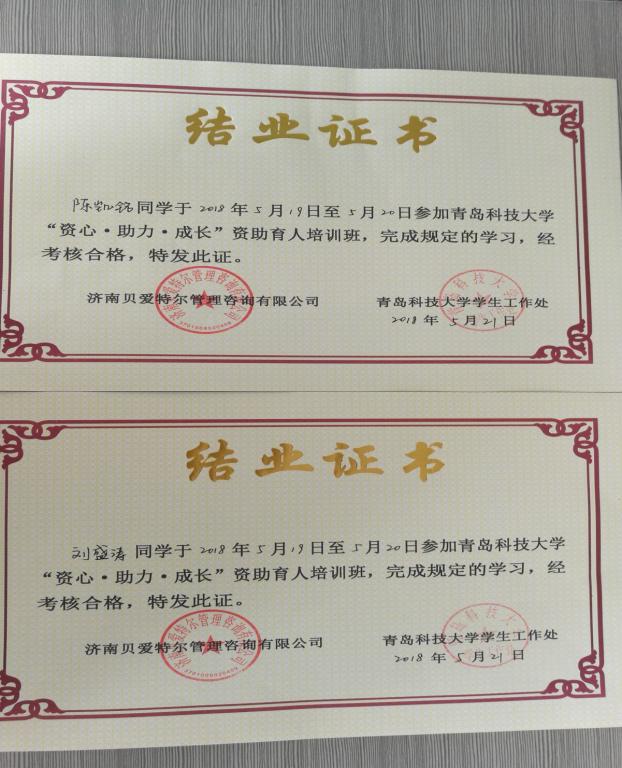 5月19日-20日,澳门十大信誉好的网站在明德楼学生发展指导中心会议室举行第三期“资心•助力•成长”资助育人培训班。四方、崂山校区各学院2015-2017级家庭经济困难学生近八十人参加培训,澳门十大信誉高机171班的陈凯铭和油储171班的刘盛涛作为代表参加。培训由济南贝爱特尔管理咨询有限公司讲师团主讲。