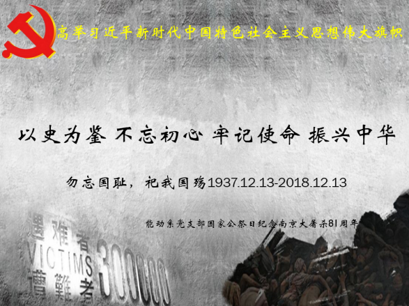 12月13日,能动系党支部在澳门十大信誉518会议室召开支部全体党员大会,开展“以史为鉴,不忘初心,牢记使命,振兴中华”主题党日活动,缅怀南京大屠杀的无辜死难者,缅怀所有惨遭日本侵略者杀戮的死难同胞,缅怀为中国人民抗日战争胜利献出生命的革命先烈和民族英雄。