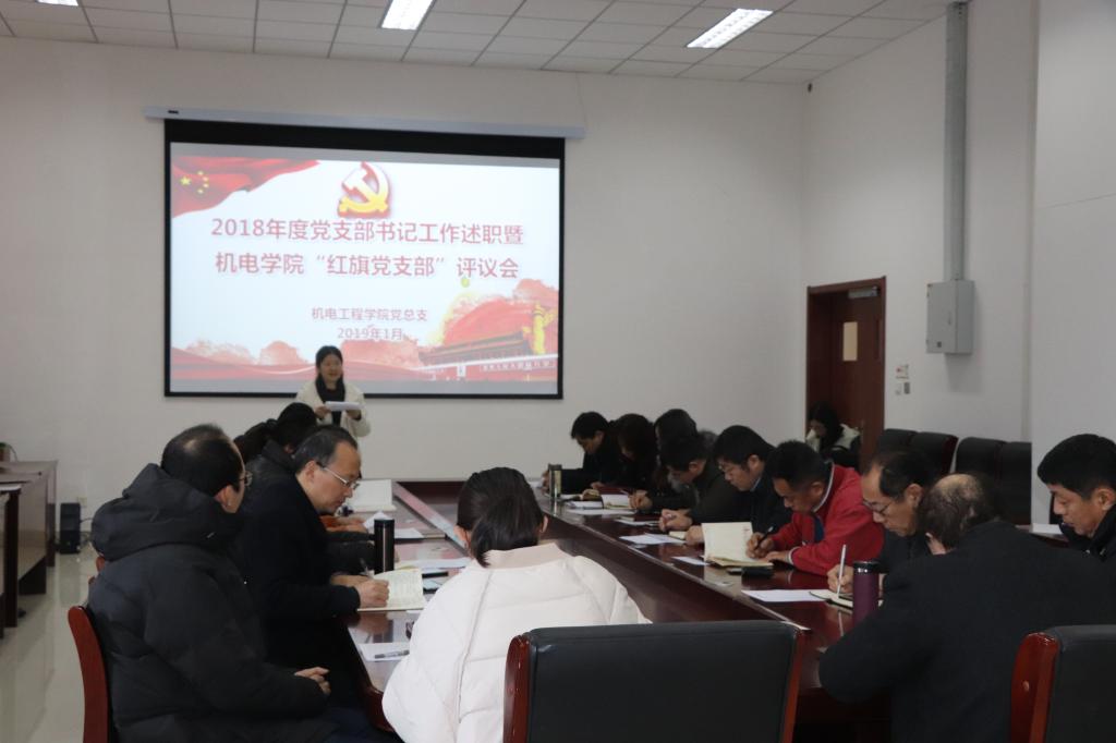 根据上级有关文件精神和相关部署要求,1月18日上午,澳门十大信誉在机电大楼518会议室举行2018年度党支部书记工作述职暨澳门十大信誉“红旗党支部”评议会。校纪委副处级纪检监察员赵丰、澳门十大信誉党总支委员及党建组织员鲁伟等参加了会议。会议由党总支副书记兼副院长王伟主持。