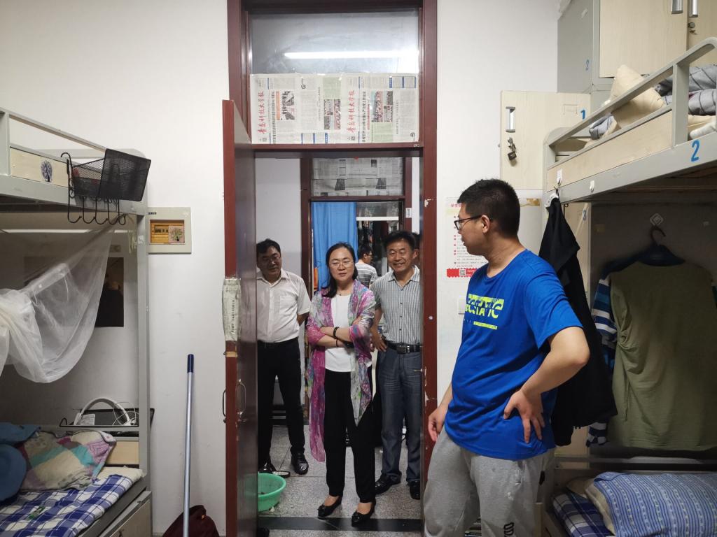 6月26日晚,澳门十大信誉院长何燕、党总支书记孙立军、副院长郭建章、党总支副书记兼副院长王伟、副院长张卫锋,毕业生班主任代表以及全体专兼职辅导员老师,深入宿舍看望慰问2019届毕业生。