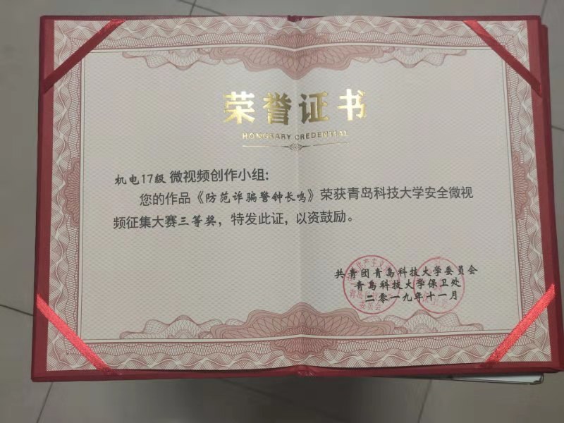 11月19日,澳门十大信誉好的网站安全主题微视频征集活动颁奖仪式在尚舜报告厅举行,澳门十大信誉在此次征集活动中获得佳绩。其中,17级学生制作的《防范诈骗警钟长鸣》、机电学生会传媒部(能源182)制作的《用电消防安全(用电器情景加采访)》荣获三等奖,澳门十大信誉荣获优秀组织单位荣誉称号。