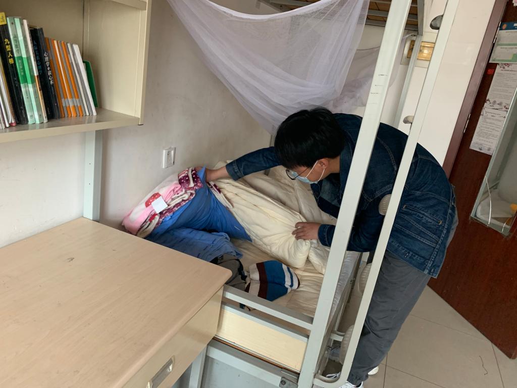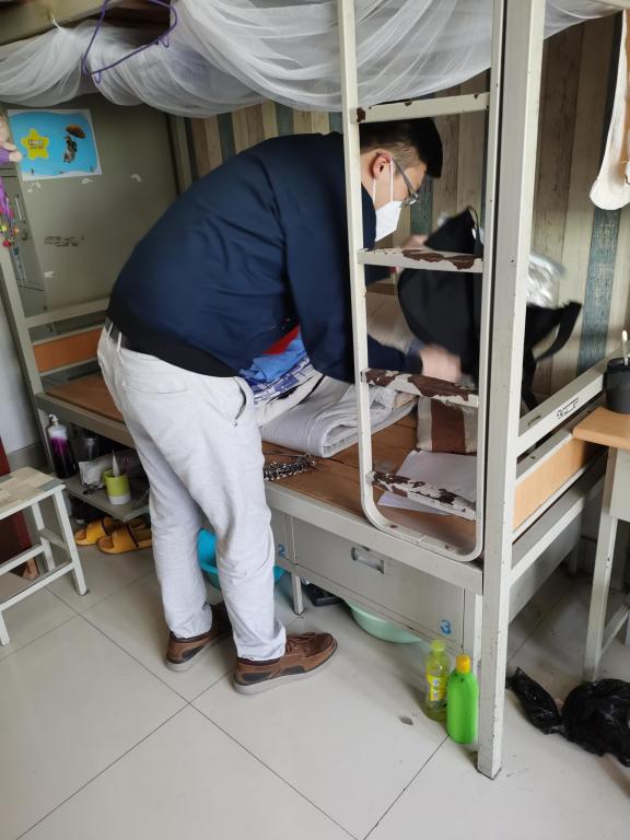 得知同学们最关心的就是宿舍的被子、花草都怎么样了。王伟、分团委书记王作辉组织全体辅导员进入700余间宿舍,化身“清洁员”,帮助同学们整理被褥、开窗通风,并给每一个宿舍配备“健康大礼包”。学生们纷纷表示,这解决了学生返校的第一个烦恼,大家都疯狂给学院辅导员“打Call”。