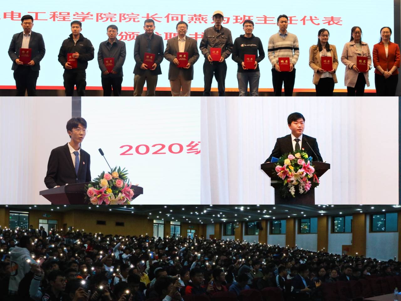 青春绽放,梦想起航。秋日的青科大,绿树蓝天、气候宜人,书声琅琅,勃勃生机。10月6日下午,澳门十大信誉在第二报告厅举行“机扬梦想 电亮未来”2020级新生入学教育大会暨专业教育大会。学院院长何燕,党委书记孙立军,副院长张斌、杨化林、张卫锋、李剑光,党委副书记兼副院长肖强,学院团委书记兼学生工作办公室主任王作辉,班主任代表,学院全体专兼职辅导员,2020级全体新生参加会议。会议由肖强主持。