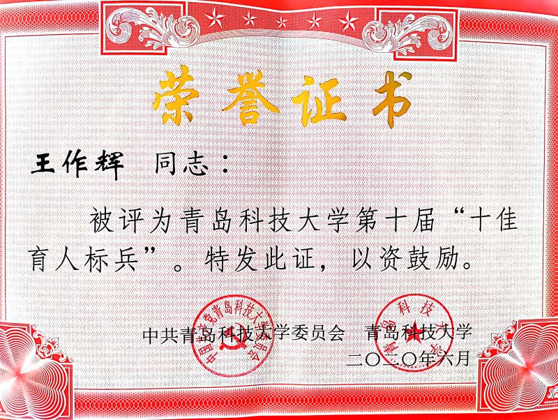 澳门十大信誉分团委(学生工作办公室)荣获“十佳师德建设先进集体”荣誉称号,澳门十大信誉好的网站团委书记兼学办主任王作辉荣获“十佳育人标兵”称号。