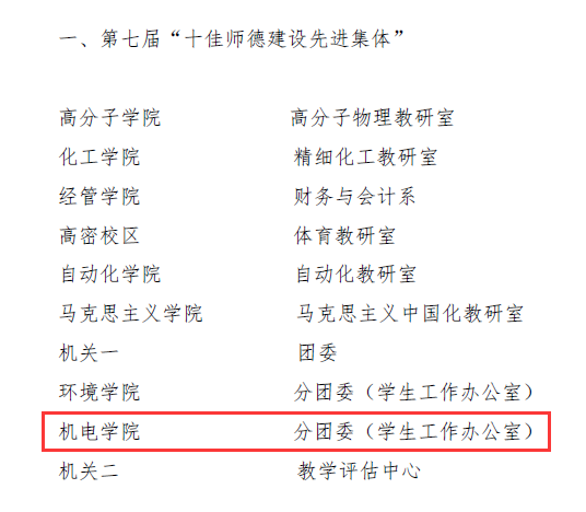 过程装备与控制工程系、新能源科学与工程系和澳门十大信誉分团委(学生工作办公室)荣获2019年度先进集体名单。
