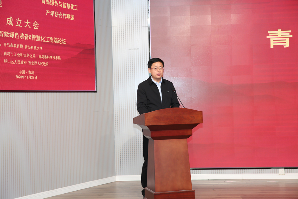 李勇向两个联盟的成立表示热烈的祝贺,向前来参加会议的各位领导表示热烈的欢迎。他指出,智能制造与化学化工相关学科是我校优势特色学科,为我国特别是山东省的机械、化工、制药行业培养了大批杰出人才。学校将充分发挥两个产学研合作联盟的桥梁纽带作用,积极打造成由“政府主导、行业引导、高校与企业合作共建”的“科技+孵化+转化”产学研协同发展机制,为青岛市以及山东省机械与化工行业注入源源不断的生机与活力。
