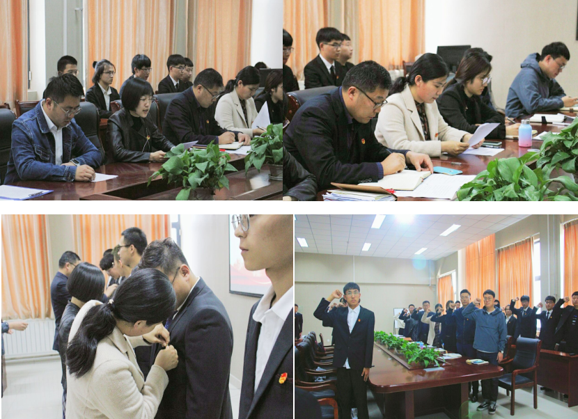 奏唱国歌后,团委副书记王娟娟宣读30名新发展团员名单。团委老师为新发展团员逐个佩戴团徽,全体团员面对团旗庄严宣誓。团委副书记曹科伟宣读《中国共产主义青年团章程》中有关团员义务和权利的条款,并对新发展团员寄予美好期望。