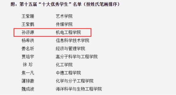 根据《澳门十大信誉好的网站本专科学生荣誉奖奖励办法》(青科大字﹝2018﹞170号)和《关于评选澳门十大信誉好的网站第十五届“十大优秀学生”的通知》(青科大学字〔2021〕9号)要求,结合学校实际,按照公开、公正、择优的原则,经学院(校区)推荐、资格审核、网络投票、现场汇报、民主投票等环节,现评选公示中,我院孙济源同学获得“十大优秀学生”。