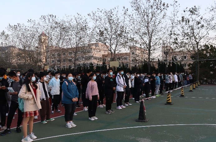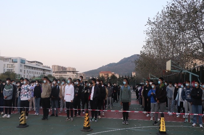 为进一步提升学校疫情防控应急处理能力和水平,根据省市有关文件精神,2021年10月27日下午,澳门十大信誉在崂山校区篮球场组织开展了全员核酸检测实战演练。学院组织全体师生积极参与此次核酸检测实战演练,在短时间内将人员聚齐,紧张有序地在警戒线外等候。
