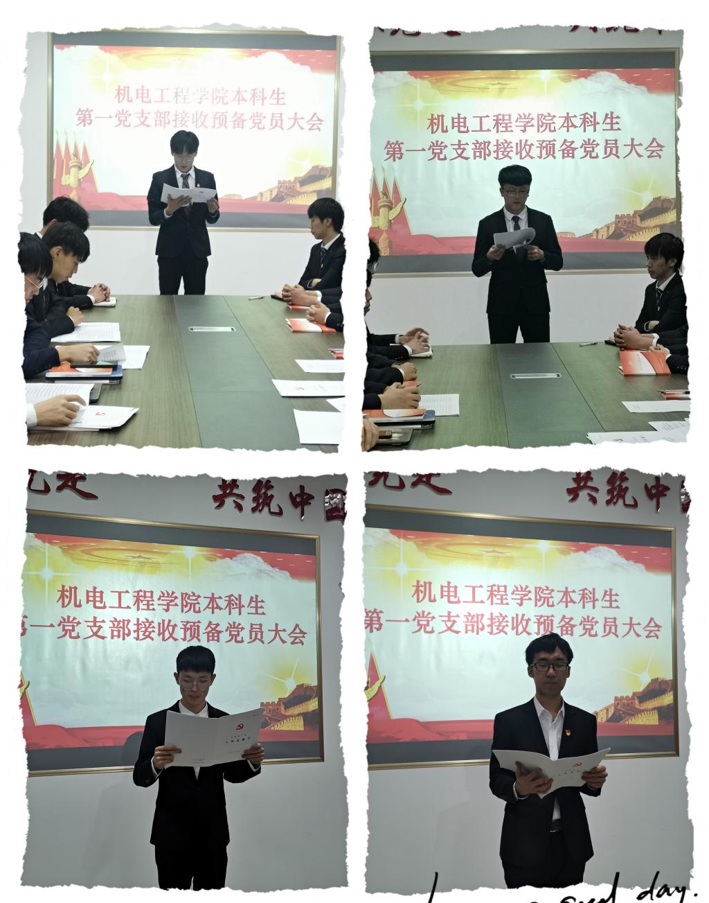 11月25日,澳门十大信誉本科生第一党支部在机电529先后三次召开接收预备党员大会,会议吸纳了张致远等14名同志加入党组织。会议由支部书记于超主持,全体党员参加。