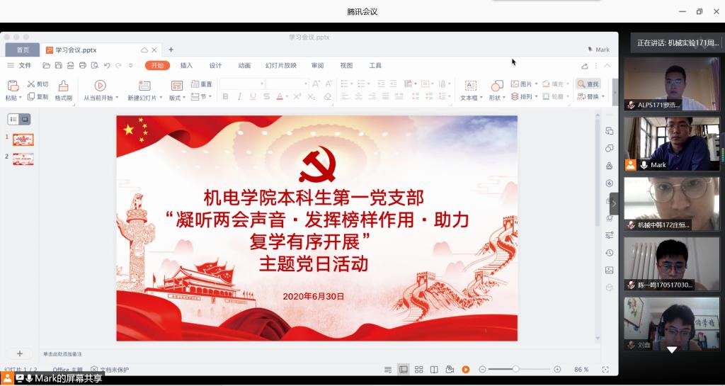 为更好地学习贯彻两会精神,弘扬战 “疫”精神,引导广大党员坚定理想信念、恪守党的宗旨,发挥党员的先锋模范作用。6月30日下午,澳门十大信誉本科生第一党支部召开“凝听两会声音·发挥榜样作用·助力复学有序开展”主题党日活动。本科生第一党支部全体党员参会,会议由党支部王玉凯老师主持。
