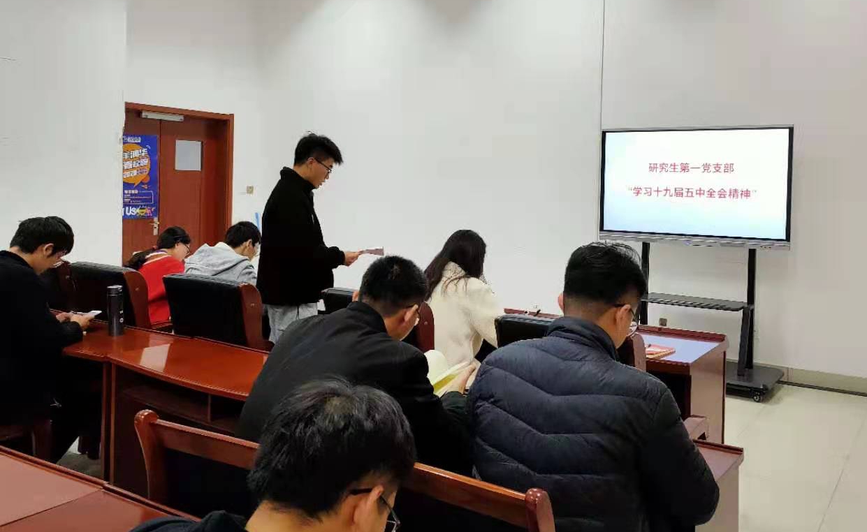 11月17日14时,澳门十大信誉研究生第一党支部在机电楼529会议室开展“十九届五中全会精神”学习交流。