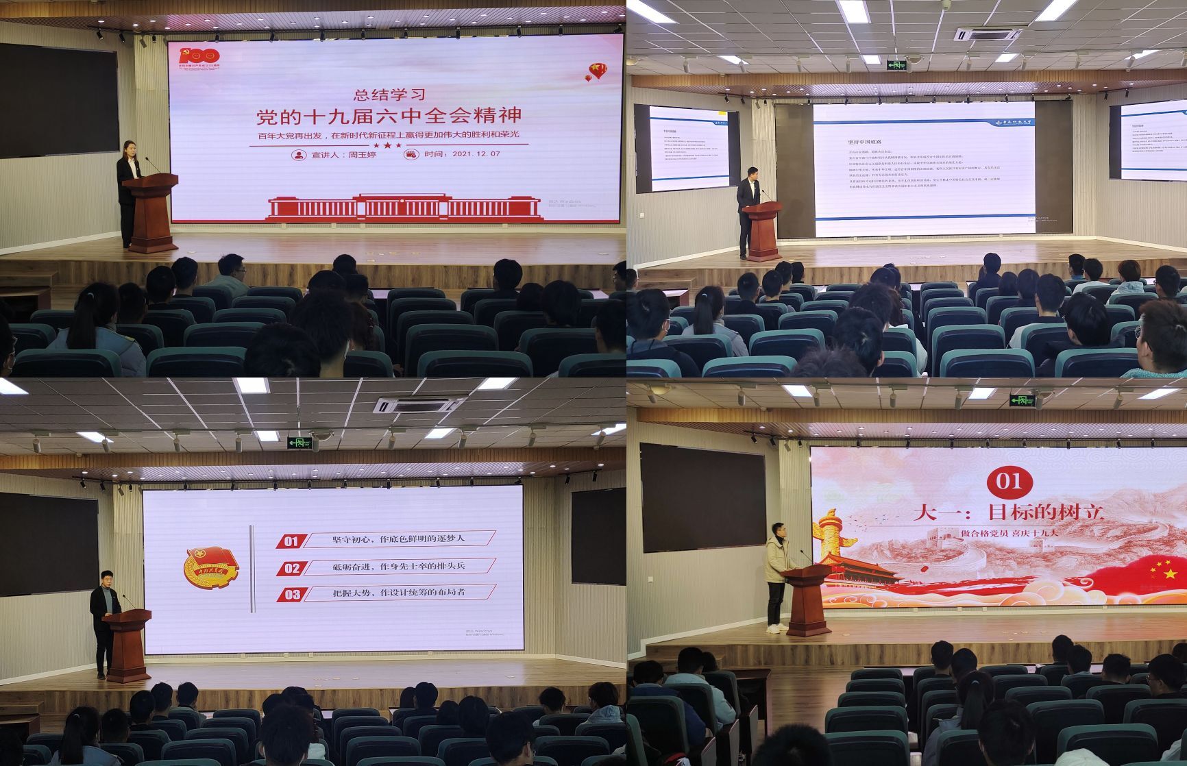 学院科学安排部署,依托“两社一团”阵地、“两员一心”平台,成立学院党的十九届六中全会精神宣讲团,以师生喜闻乐见的方式展开学习宣讲。澳门十大信誉党的十九届六中全会精神宣讲团以《勇担复兴大任,书写青春答卷》《宏伟蓝图鼓舞人心,奋勇前进凝聚力量》《做有志气、有骨气、有底气的新时代青年》等为主题,以“百年成就”“十大历史经验”为主线,带领青年学生深入学习贯彻党的十九届六中全会精神,各党支部开展“感悟全会精神,激发奋进力量”主题党日,在实践中入脑走实走深。