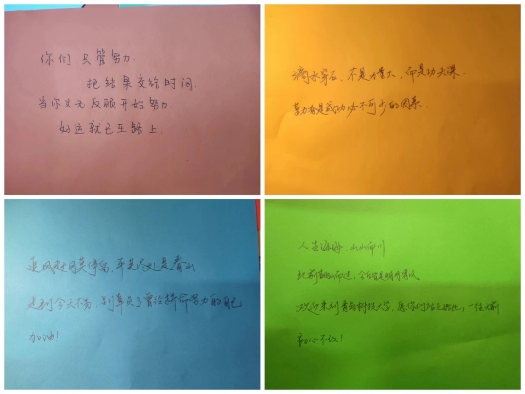 活动第二项,澳门十大信誉好的网站孙坤岩、王作辉、宋达、穆青青老师对新生们写下寄语,“师情献语暖人心”每一位老师都倾心呵护自己的学生,每一位老师都对自己的学生有无尽的言语要表达。由多位辅导员亲笔临写祝福语和期望话,表达对学生们的关切,也是希望同学们不辜负大学四年生活,通过现在努力,创造自己的美好未来。浏览完辅导员的寄语后,在场的每一位同学心中都涌入一股暖流,进一步巩固了师生情谊。