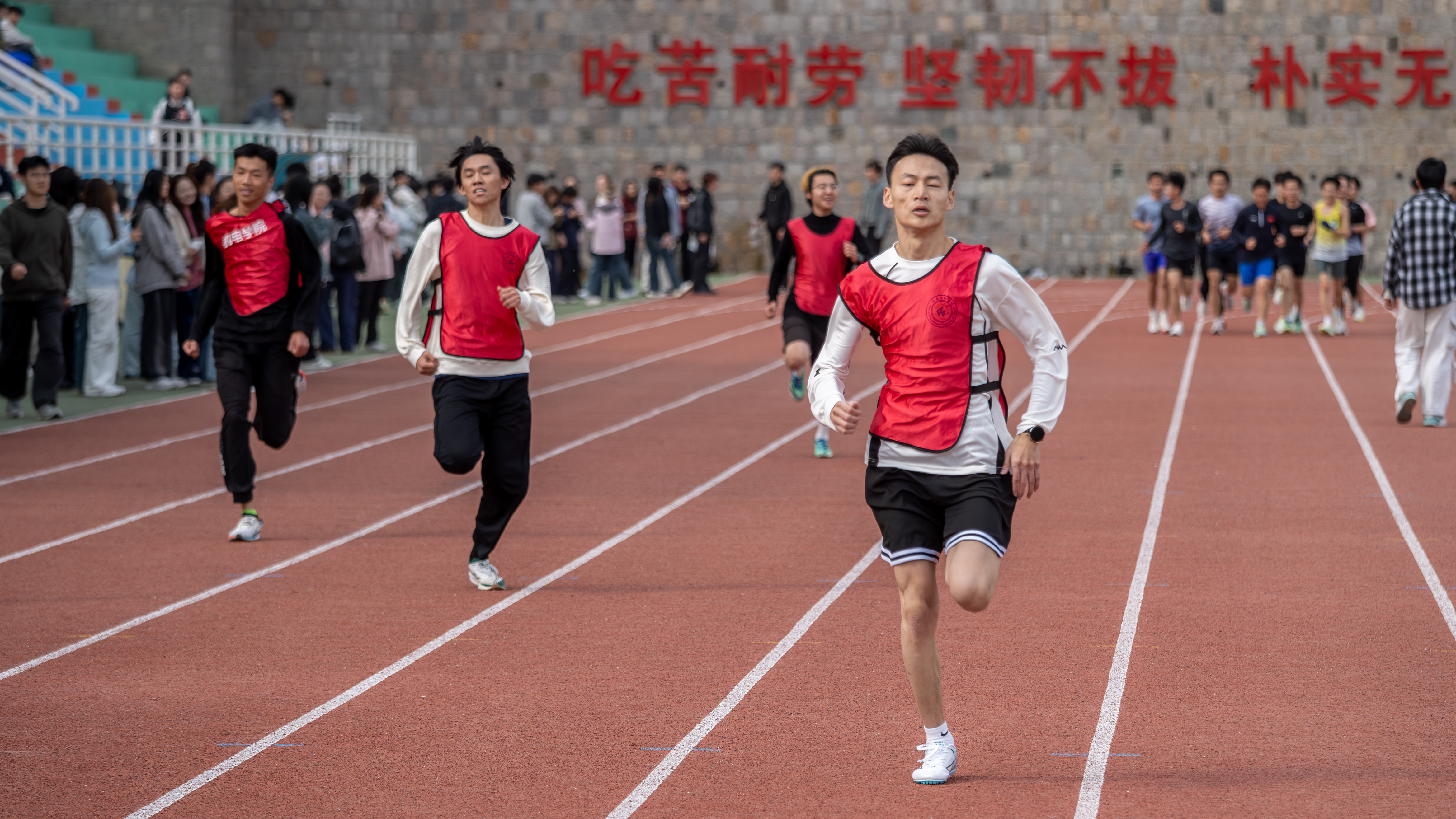 赛场上,短跑运动员风驰电掣,每一步都踏响青春的鼓点;中长跑健儿坚韧不拔,用汗水丈量着坚持的距离。跳高、跳远区域,一次次腾空而起,挑战着新的高度与远度;铅球抛出的瞬间,便凝聚着力量与决心。引体向上和仰卧起坐区域,艰难的拉起,凝聚着力量与坚持;有节奏的起卧,诉说着不屈与坚韧。同学们以饱满的热情投入其中,将自信写在脸上,把拼搏付诸行动,完美诠释了“爱体育,兴科大”的体育精神,彰显出机电学子朝气蓬勃的精神风貌。