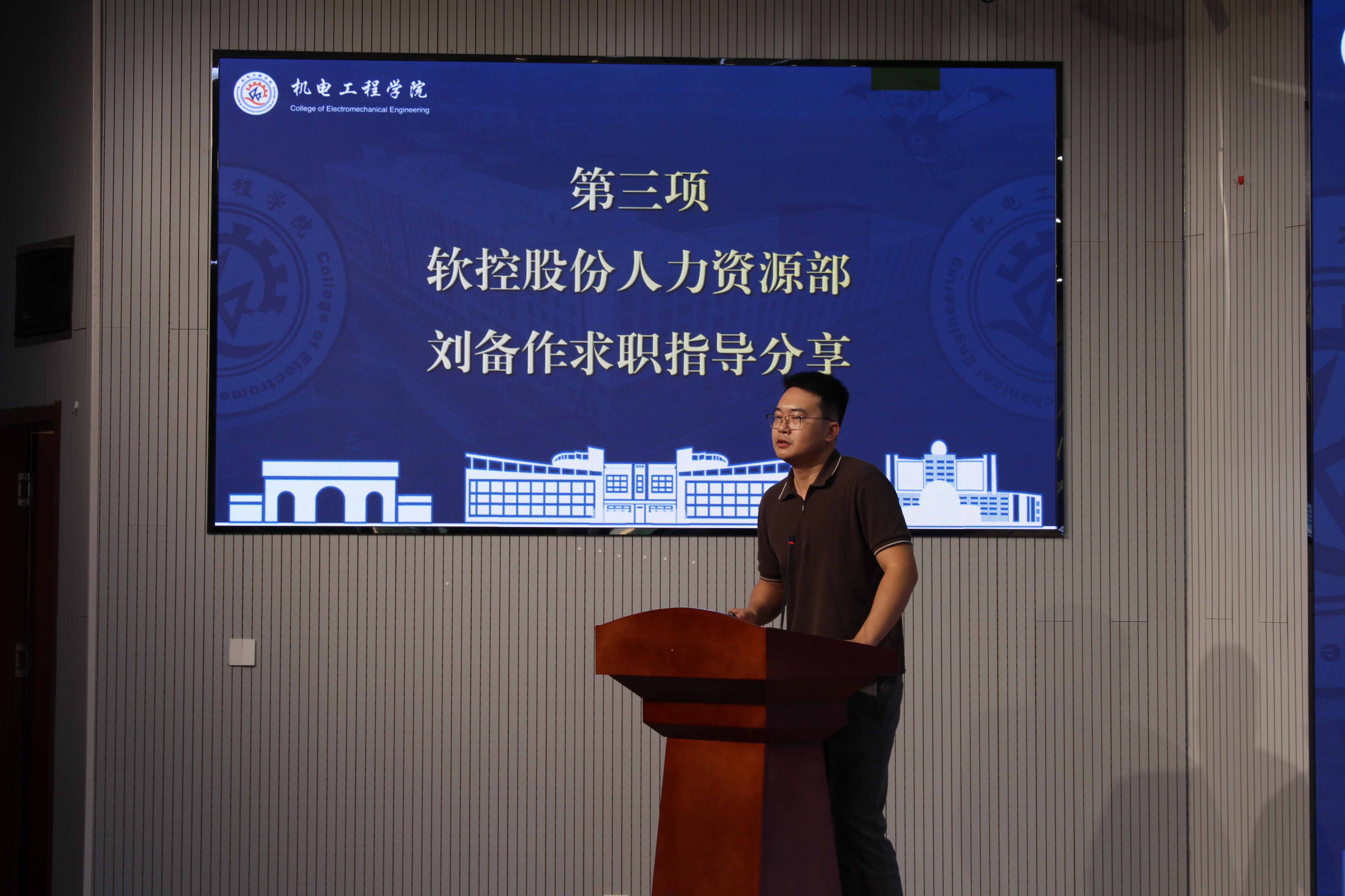 刘备以“HR眼中的校招季”为题,从企业招聘视角为研究生提供实战指导。刘备首先分析了当前制造业领域校园招聘的核心趋势,指出先进制造业对研究生能力需求的特点,强调研究生需优先把握秋招窗口期。同时,刘备从企业校招筛选逻辑角度详细拆解了HR的工作流程,指出简历须避免信息缺失、格式混乱、错别字,自我介绍须简洁明了等基础问题,建议同学们提前梳理核心课程及科研成果知识点。最后,刘备结合软控股份在橡胶机械、智能物流装备领域的产业布局与人才培养体系,分享了企业对机电类研究生的能力诉求,为同学们制定职业规划提供参考。
