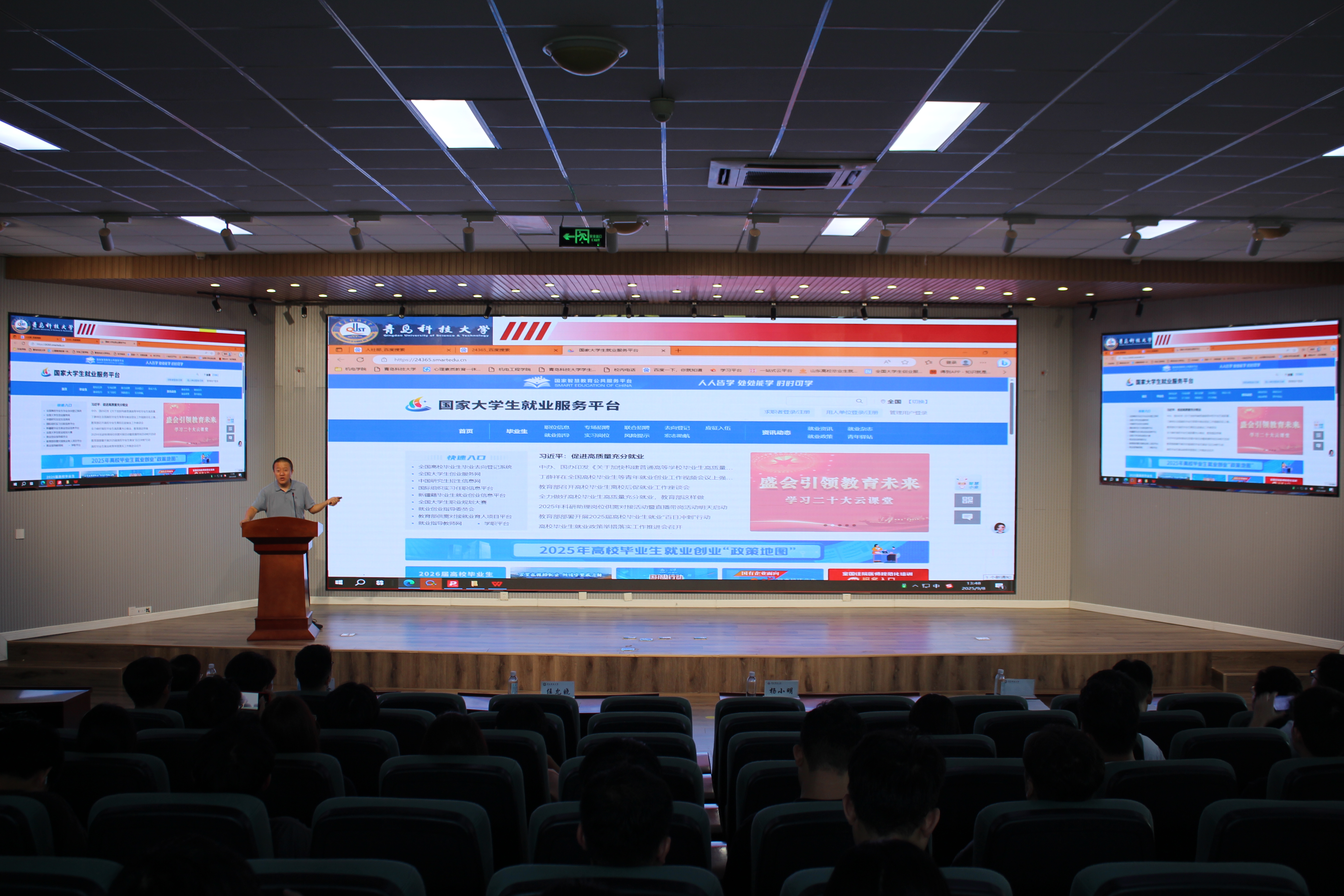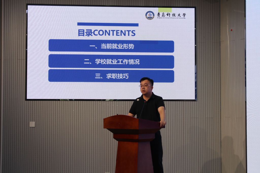 孙一君“就业形势与求职指导”为题,从当前就业形势、学校就业工作情况、求职技巧三个维度进行分享。孙一君首先结合国家及山东省关于高校毕业生就业的最新政策,强调“稳就业”“保就业”的政策导向。孙一君通过详实数据指出当前就业市场的整体态势,介绍了澳门十大信誉好的网站2024届、2025届毕业生就业整体情况,尤其是澳门十大信誉好的网站研究生的毕业去向分析,毕业生在万华化学、赛轮集团、软控股份等知名企业的就业分布,为同学们树立就业信心。最后,孙一君聚焦研究生求职痛点,围绕求职渠道、简历撰写等内容进行讲解,指导同学们清晰人生规划,科学研判,明确个人求职路径方向。