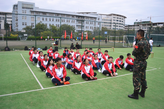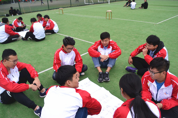 培训会伊始,教官鼓励同学们用自己巅峰的状态和高昂的士气参与到培训中去。集中开展“你中有我、快乐先行和连队建设”三个特训活动。在“你中有我”活动中,为了活跃气氛,教官与同学们先做互动,两人面对面,两手相握,注视对方的眼睛,阅读对方的眼睛的内容,让同学们学会理解和包容他人。在“快乐先行”活动中,游戏的两个原则都是快乐,强调同学们勇于表现、学会放下。在“连队建设”活动中,要求同学们在三十秒内组织围成一个按照出生日期排序的圈,然后吧他们分成四个连并分别被授予了连旗,完成连队建设,锻炼同学们的积极性与团结互助性。最后在同学们歌唱祖国的洪亮歌声中,为即将召开十九大献上了诚挚祝福,表达了共筑中国梦的坚定信心。