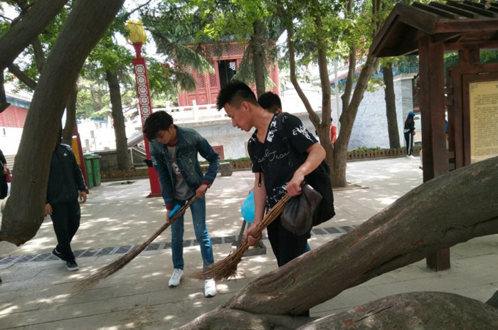 5月13日上午9:00,为了保护环境和发扬吃苦耐劳的义工精神,13名澳门十大信誉好的网站青尘义工队队员前往湛山寺进行卫生清理工作。在湛山寺门口,义工队员与一同参加活动的青岛大学青峰义工队、小学生义工队集合并进行各队自我介绍和任务分配。