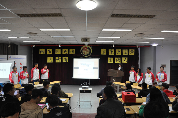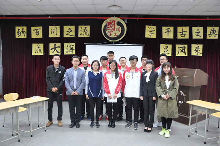 比赛共分为四轮。第一环节的必答题中,所有成员需选择易、中、难三个程度依次答题,问题深刻准确的考察了选手们的文化底蕴。第二环节为两两合作答题,选手们各抒己见,准确的捕捉题目的关键之处,发挥想象和联想给搭档提供有力的信息。精彩的比赛让人拍案叫绝。第三轮抢答环节中,选手们听完题目按键抢答,选手们争先恐后,比赛如火如荼地进行,三号选手方晓彤以巾帼不让须眉之势将比赛推向白热化。第四轮论述,选手们各施所长,妙语连珠发表自己对于题目的见解,在场的观众们被深深的吸引,比赛精彩绝伦,深深吸引着现场观众。四轮比赛结束后,分团委老师杨蕾、国学读书会会长边靖分别对本次比赛作了简单总结。最终,方晓彤、刘泽宇同学获得一等奖,比赛在观众的掌声中圆满结束。