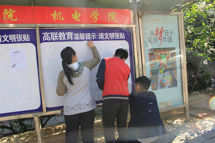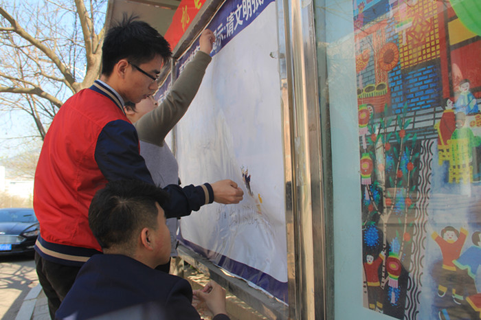 4月22日下午2:00,为贯彻落实“一学一做”方针,增强学生实践能力,澳门十大信誉好的网站澳门十大信誉学生会宣传部展开了针对南苑餐厅附近宣传栏的清理行动。澳门十大信誉宣传部成员积极参加了此次活动。