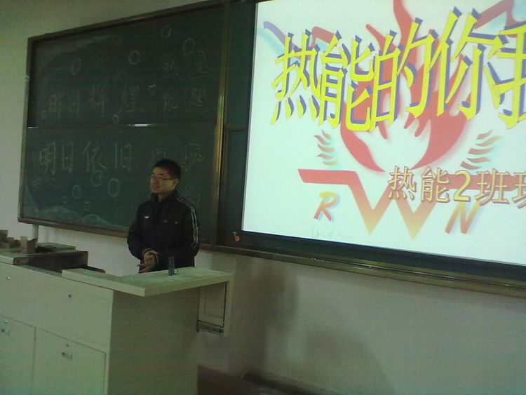 班会在班歌《热能的你我》中拉开了帷幕。此次班会由王栋同学主持。首先班长张帅刚总结了前一段班级工作情况及在学院活动中取得的成绩,同时用PPT向大家展示了热能112班的昨日辉煌,展现了热能112班活泼可爱的一面。接着辅导员与大家互动,辅导员点名同学们上台发言,被点名的同学从容镇定的讲述了自己上大学以来的生活变化,感受,自己有趣的经历等等。随后学习委员毛燕敏为大家解答了关于学分方面的疑惑,强调了挂科的严重性,同时动员大家冲刺期末,为大家讲了一下考试模式以及在未来的一个月的复习计划,同学们纷纷提出自己在学习方面的困难和希望,课代表针对性的为大家做了讲解。随后王栋同学播放了一段励志视频《那一年的我们》,在场的同学都被该视频深深地触动了。大家决心以后好好学习,不虚度光阴,珍惜父母的血汗钱,好好孝敬父母。最后秦洪庆老师总结:结合自身的经历向大家交流了学习经验和感受,同时向同学们提出了两个要求:积极参加活动并从中取得经验,在活动中锻炼自己,培养自己的受挫能力;要努力学习,取得优异的成绩。他指出在最后的一个月里要合理安排时间,在较短的时间里提升自己,努力在期末中取得优异的成绩。最后,他要求大家严格要求自己,诚实答卷拒绝作弊,并结合案例向同学们讲述了作弊后果的严重性,要求同学们树立良好的学风。