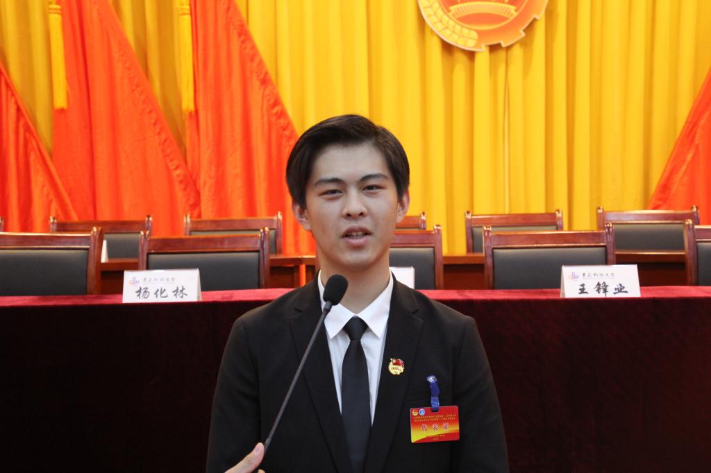 我是澳门十大信誉装控162班的张津侨,作为此次双代会的学生代表,我会正确表达广大学生的想法和意见,承担好责任并展现学生代表的良好精神风貌,为联系学生与学院的双代会尽自己最大的努力。最后,预祝大会圆满成功。