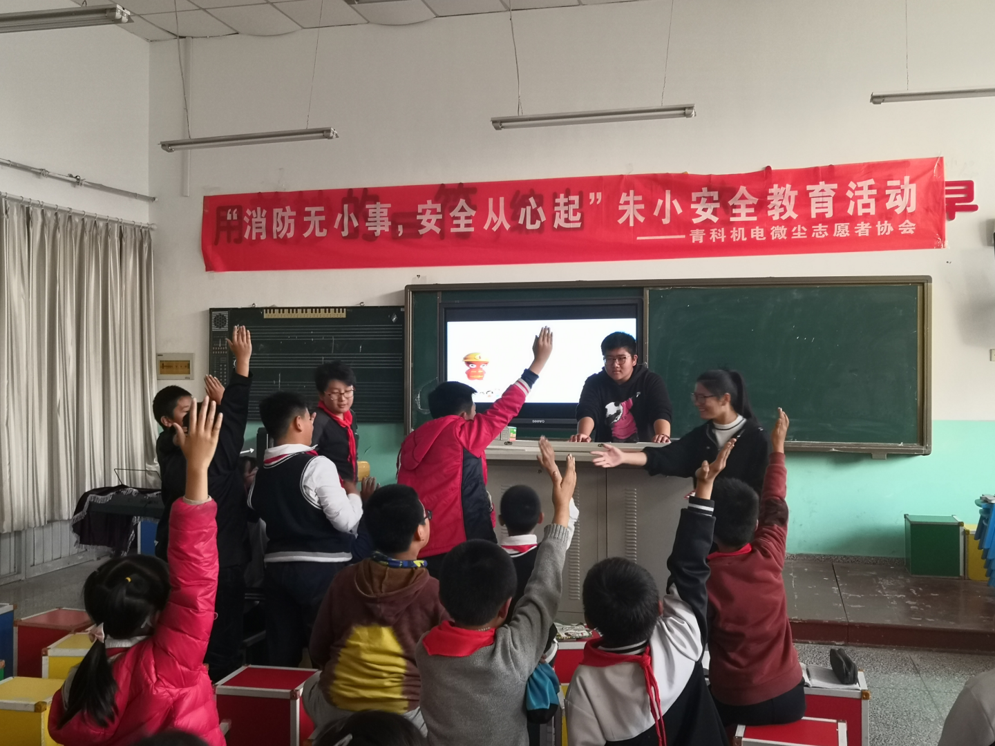 澳门十大信誉微尘志愿者协会于11月13日下午2:00走进朱家洼小学进行了安全教育活动。众所周知,11月9日是全国消防日。所以志愿者们趁此机会给孩子们讲述基本的防火安全常识和防范措施,带着他们认识一些消防设施。并与学生们进行互动交流,大大提高了小学生们的安全防患意识。更吸引人的是有奖问答环节,孩子们踊跃举手发言,与此同时,志愿者们准备了笔和本子等奖品来奖励那些积极发言的孩子。